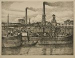 [ÉNERGIE]. Charbonnages d’Hensies-Pommerœul. Compositions et gravures de Gustave Pierre. Paris, 1937. — Album grand in-folio oblong, en feuilles, sous chemise cartonnée illustrée de l’éditeur à dos de basane havane. {CR}Superbe album...
