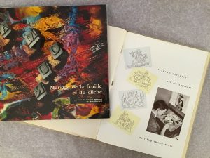 échantillons de pièces publicitaires (dépliants, buvards, signets, couvertures de livres, papiers à en-tête, etc.) évoquant diverses régions françaises, exécutées par les apprentis de l’imprimerie Crété à Corbeil. Elles ont été soigneusement mises en page dans ce livre contenant également des textes de Charles d’Orléans, Apollinaire, Mistral, Aragon, etc.{CR}Exemplaire parfaitement conservé. La couverture porte la mention « Recto verso 1957 ». Quelques usures à l’étui.