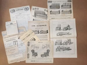 Gimère, tapissier-ébéniste - Pinault, meunuisier-ébéniste - Chrétiennot, fauteuils et chaises longues à dossiers mobiles (1878) - L. Gudin et Joseph Pissard, serruriers - maison Weber, fabricant de sièges bambou - Humbert, tabourets et chaises de pianos, fauteuils de bureaux, tabourets de dessinateurs, etc. - André, tapissier, etc.{CR}Quelques déchirures.