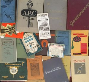 Lyon, vers 1920. — In-8, broché. Exemplaire incomplet. Couverture insolée.{CR}- EXUPÈRE. Instruments de pesage pour Les Sciences, Le Commerce, L’Industrie. Paris, [vers 1920]. — In-8, brochures agrafées sous une couverture générale.{CR}Sous une couverture générale figurent 6 catalogues distincts de balances de la maison Exupère. Joints les prix de mai 1930 pour les balances pour diamant, perles fines et pierres précieuses.{CR}- ÉTABLISSEMENTS MARCEL OLIVIER. Album général. Rouen, 1923. — In-4, couverture imprimée. Agrafé. Déchirures au dos.{CR}- WINTHER-HANSEN. Tue-mouches électriques à courant alternatif de 110 à 250 volts. Paris, [vers 1923]. Note manuscrite dans la marge inférieure. Pliure. On joint une deuxième publicité de la même maison.{CR}- ENTZ & RUCKER. Catalog DD Garanteed Builders’ Hardware at Cut Prices. Los Angeles, 1924. — Catalogue in-8 de 20 pp. Agrafé.{CR}- Mécanicarm. Saint-Etienne : La Stéphanoise, 1924. — In-8 oblong, 48 pp., couverture illustrée. Agrafé.{CR}Catalogue à prix marqués d’outils en tous genres : marteaux, hachettes de ménage, pinces, démontes pneus… Nombreuses illustrations.{CR}- FENWICK FRÈRES. Tarif N. 24. Petit outillage et instruments de précision. Paris : Fenwick frères, vers 1925. — In-4, broché.{CR}Exemplaire enrichi de 22 publicités de 1 à 4 feuillets d’outillage des établissements Fenwick, publiées en 1925 et 1926.{CR}- Ferronnerie – Quincaillerie – Pièges – Chaînes. Ancienne maison V. Auvray… Paris : [impr. Libma], 1925. — In-4, broché, couverture vert bouteille imprimée.{CR}Catalogue de quincaillerie abondamment illustré. On joint un fascicule de 16 pp. : « Tarif – novembre 1927 ».{CR}- VAL D’OR. Outillage. Saint-Cloud, 1925. — In-4, couverture illustrée. Broché.{CR}- ANNUAIRE DE LA QUINCAILLERIE METALLO 1926. Paris : J. Lacroix, 1926. — In-8, toile bleue illustrée de l’éditeur. Reliure défraîchie.{CR}- BELZACQ FRÈRES. Stores. Paris, 1926. — Brochure dépliante in-8.{CR}- GOLDENBERG. Catalogue général 1926. Outillage. Zornhoff, 1926. — In-4, reliure toile grise d’édition. Usures d’usage à la reliure.{CR}- PICARD. Album Général de Quincaillerie de Bâtiment. Paris, 1926. — In-folio, cartonnage demi-toile grise de l’éditeur.{CR}- GOLDENBERG. Catalogue général 1927. Zornhoff, 1927. — In-4, 442 pp. Percaline imprimée de l’éditeur.{CR}- ÉTABLISSEMENTS A. RÉMY. Articles de Quincaillerie. Articles de Chaussures. Fourchambault, 1929. — In-4, couverture imprimée. Agrafé.{CR}- GOODRICH. Tuyaux Goodrich. Colombes, 1929. — In-12 oblong. Belle couverture illustrée.{CR}- HARENT (R.). Spécialités Américaines. Outillage de Qualité. Paris, 1929. — In-4, broché, couverture cartonnée. Comprend 4 planches dépliantes de publicités en couleurs pour des cadenas.{CR}- Calendrier pour 1929, cartonné in-16 et illustré, des établissements Mortis, spécialisés dans la destruction des rats, souris, cafards, etc.{CR}- COMPAGNIE DES CLOUS « AU SOLEIL ». Serrurerie Quincaillerie et Clouterie Pour Maroquinerie, Gainerie et Cartonnages. Paris, 1929. — In-4, couverture illustrée. Agrafé.{CR}- COUTELLERIE DE QUALITÉ. Canifs et Couteaux manches patinés inoxydables. S.l., [années 20]. — Catalogue in-8 entièrement illustré. Cordelette verte.