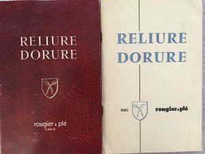 [RELIURE] ROUGIER & PLÉ. Outillage & Fournitures pour la reliure-dorure. Catalogue général. Paris, [années 1960]. — 2 catalogues in-8, agrafés. {CR}Ensemble de 2 catalogues comprenant de nombreux échantillons de cuir, simili-cuir, percaline,...