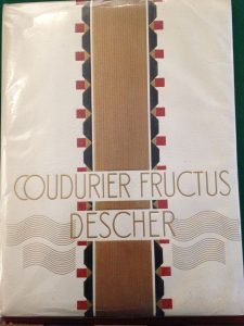 [TEXTILE] COUDURIER, FRUCTUS, DESCHER. Trentenaire de la maison Coudurier, Fructus, Descher. Fabricants de soieries à Lyon. Lyon, 1927. — In-4, cartonnage de l’éditeur, plats imitation cuir souple, le premier orné d’une décoration...