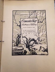 [FOURRURES] CANADA-FURS. Fourrures & Pelleteries. Paris : L. Ullmann, [années 20]. — In-folio, titre, 12 planches, couverture illustrée. En feuilles tenues par une cordelette. {CR}Superbe catalogue comprenant 12 planches de modèles de fourrures...