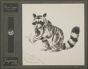 [FOURRURES] JUNGMANN. Animaux à fourrure. Paris : Jungmann et Cie, 1931. — Album in-8 oblong. En feuilles, sous chemise cartonnée noire et agentée, illustrée d’une tête de renard en noir, avec rabat ajouré. {CR}Superbe album publié par la...