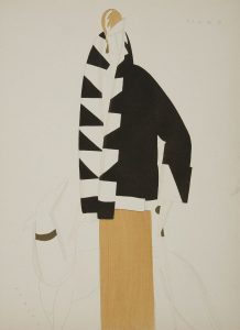 l’une des plus prestigieuses éditions publicitaires Draeger par la qualité et le luxe de sa réalisation. Il propose sur 4 feuillets un texte de Miguel Zamacoïs, imprimé en noir et or sur fond bleu pâle, pastichant les fameuses Lettres de Montesquieu, racontant la visite d’un Persan à Paris à la découverte de son luxe, de ses élégantes et particulièrement de ses modes.{CR}À ce texte viennent s’ajouter 12 superbes planches, rehaussées d’or et de pochoirs dans « le pur style des années vingt », de l’artiste espagnol Edouard-Garcia BENITO.{CR}L’ensemble est présenté dans une belle chemise cartonnée et illustrée d’une composition en noir et or de Benito.{CR}Exemplaire très bien conservé malgré de légers défauts d’usage au dos de la chemise. Manque les rubans.