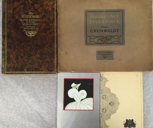 [FOURRURES]. Ensemble de 4 livres et brochures :{CR}- GRUNWALDT. Parisiennes & fourrures. Paris, [vers 1908]. — In-folio oblong, couverture illustrée. Agrafé.{CR}Beau catalogue comprenant 11 planches de montages photographiques. Couverture...