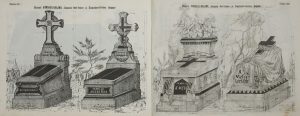 [FUNÉRAIRE - DEUIL - FOURNITURES D’ÉGLISE]. Ensemble de 7 catalogues et brochures d’articles funéraires :{CR}- ROMBAUX-ROLAND. Granit de Belgique. Rombaux-Roland à Jeumont (Nord). Jeumonr, [vers 1900]. — In-4 oblong, couverture illustrée....