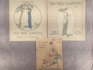 [GRANDS MAGASINS] AUX TROIS QUARTIERS. Ensemble de 3 catalogues publicitaires du magasin « Aux Trois Quartiers » situé à l’époque boulevard de la Madeleine à Paris.{CR}- Lundi 13 février (1911). Les Dentelles. Les Robes de soirée. Paris,...