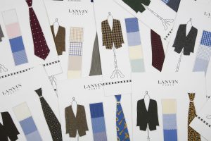 [HAUTE COUTURE] LANVIN. L’homme Lanvin. Collection Automne-Hiver 95/96. Paris : Lanvin, 1995. — Plaquette in-4, agrafée, accompagnée de 10 planches. {CR}Catalogue anglais-français de la collection homme de 95/96, accompagné de 10 planches...