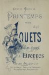 Illustration de la couverture que l’on peut attribuer à Chéret. La belle composition de la première page est signée de Blondeau. [Item 618]{CR}- BAZAR DE L’HÔTEL DE VILLE. Jouets, étrennes 1934. Paris, 1933. — In-4, couverture illustrée. Agrafé. Couverture illustrée par Léger.{CR}- PALAIS DE LA NOUVEAUTÉ. Jouets, étrennes 1934. Paris, 1933. — In-8, couverture illustrée. Agrafé. {CR}- SAMARITAINE. Jouets. Étrennes. 1934. Paris, 1933. — In-8, couverture illustrée. Agrafé. Belle couverture illustrée par Jean CHAPERON.