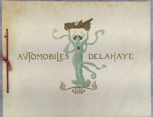 promotionnel des automobiles Delahaye remarquablement illustré notamment de lithographies originales en couleurs d’Abel FAIVRE, LÉANDRE, Louis MORIN et HARRY ELIOTT. Nombreuses vignettes de Meussot et Zimmerman dans le texte.{CR}Piqûres à la couverture.