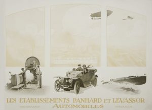 7 voitures Panhard et Levassor, chacune superbement reproduite en couleurs sous serpente de papier vergé imprimé : Coupé 4 places conduite intérieure - Deux baquets - Coupé avant Torpédo - Torpédo - Limousine - Double coupé conduite intérieure - Skif Torpédo.{CR}Le titre illustré présente les trois spécialités de la société (machines industrielles, voitures et bateaux).{CR}Salissures au cartonnage, pliures au premier feuillet.
