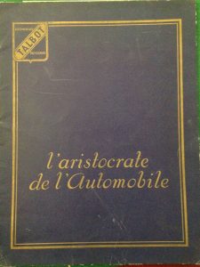 [AUTOMOBILES] TALBOT. L’aristocrate de l’Automobile. Lyon : Julien Wolff, [vers 1940]. — In-4, (8 ff.), couverture bleue imprimée. Agrafé. {CR}Album pour les automobiles Talbot particulièrement luxueux, numéroté, illustré non seulement de...