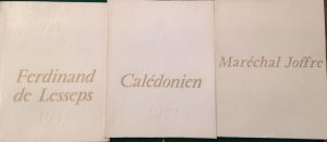 et Francis CARCO. Hors-texte par Roger Chapelet, plusieurs photographies et reproductions dans le texte dont des œuvres de Hambourg, Baraduc, Souverbie, etc.{CR}- Ferdinand de Lesseps. Paris, 1952. — In-4, broché.{CR}Lancement du paquebot « Ferdinand de Lesseps ». Textes de la Comtesse de la Bégassière, George Edgar-Bonnet, Jacques Adnet et François Charles-Roux. Hors-texte par Roger Chapelet, plusieurs photographies et reproductions dans le texte dont des œuvres d’Yves Brayer, Pérot, etc. Joint menu illustré de la compagnie des messageries maritimes.{CR}- Maréchal Joffre. Paris, 1951. — In-4, broché.{CR}Lancement du paquebot « Maréchal Joffre ». Textes de Roger Carour, Pierre Camo, Jules Leleu et Marius Leblond. Hors-texte par Albert Brenet, plusieurs photographies et compositions dans le texte par Pierre Verger, Patrick de Manceau, etc.