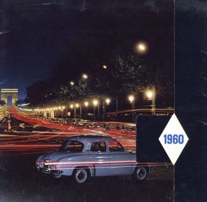 Édition originale. 56 pp. Reliure à spirale. {CR}- Berliet 63. Deswartes éditeur, 1964. In-4 (32,5 x 24,5 cm). Édition originale. 30 pp. Photographies par Thévoz, Bourguignon, Lombard. Cartonnage rouge sous jaquette illustrée. {CR}- Calendrier Renault 1960. Imprimerie Drager, 1960. Une pochette illustrée à rabat (29 x 29 cm) contenant un disque 45 tours et un calendrier illustré de photographies en couleurs par Robert Frank, Patrice Molinard, Dentsu, Frank Horvat, Marc Riboud. {CR}- Peugeot. Contrat d’agence 1926-26. Une pochette contenant un contrat d’agence de 1926 et un jeu de 6 photographies originales de la chaîne de montage de la Peugeot 204.