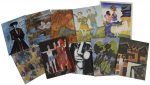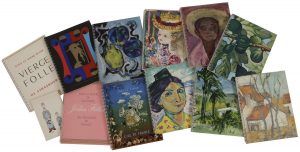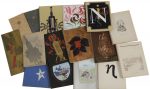 illustrée en couleurs par les meilleurs artistes de cette période.{CR}Présentée dans 3 coffrets cartonnés rouge sur mesure.{CR}Coffret 1 (1927-1950){CR}- 1927 : in-4, couv. cartonnée agrafée, cordonnet. Papier bistre orné de la silhouette de Nectar livreur sur la couverture et sur chaque page.{CR}1928 :{CR}- Liste des grands vins fins, in-4 allongé, couv. cartonnée agrafée, cordonnet. Couverture art déco or, rouge et noir. Joint 1 f. publicitaire sur le verre Nicolas.{CR}- 2 plaquettes in-8, la première sur papier fort marbré gris, la seconde sur papier fort marbré crème. Logo des établissements Nicolas gaufré sur le premier plat. Imprimées par J. Van Gindertable, Paris.{CR}Plaquette identique hormis la couverture et la page de titre. Joints : Prix-courant actuel (1 f.) et Extrait du prix courant, le gérant du dépôt Nicolas.{CR}- 1929 :{CR}Couv. cartonnée agrafée, cordonnet, noire avec composition art déco en rouge et or. {CR}Joint : Complet des 2 ff. volants, additifs à l’édition, « Appellations d’origine des grands vins de Bourgogne » et « Les grands vins de Bordeaux », 2 ff. volants.{CR}-1930 : Couv. cartonnée or imprimée à froid et illustrée en bleu. {CR}Complet du feuillet volant, additif à l’édition, « Appellations d’origine des grands vins de Bourgogne ». Illustrations de CASSANDRE.{CR}- 1931 : Couv. cartonnée bleue ajourée. Complet des 4 pp. volantes, additif à l’édition « Appellations d’origine des grands vins de Bourgogne ». Illustrations de CASSANDRE.{CR}- 1932 : Couv. cartonnée noire ajourée, Illustrations d’Édy LEGRAND. {CR}- 1933 : Couv. cartonnée argentée ajourée. Illustrations de Jean HUGO. {CR}Complet du feuillet volant « Gare cette année aux vins anémiques !… »{CR}- 1934 : Couv. cartonnée blanche. Illustrations d’Alfred LATOUR. Complet des 4 ff. volants in-4 pliés sur le vin anémique. Jointe : une carte in-16 avec tarifs pour le champagne Doyen.{CR}- 1935 : Couv. cartonnée cuivrée illustrée, dos à spirale plastique. Illustrations de DARCY.{CR}- 1936 : Couv. cartonnée noire gaufrée. Illustrations, compositions et typographie de CASSANDRE. Joints : 2 cartons in-18 « Extrait du tarif général ». {CR}-1938 : Couv. et bois en couleurs in-texte et à pleine page de GALANIS. Mise en page et typographie de CASSANDRE. Joint tarif (2 ff.). {CR}- 1939 : Couv blanche. Illustrations d’ERICKSON. Mise en page et typographie de Cassandre. {CR}- 1949 : « Sous le signe de Paris ». Illustrations de DIGNIMONT. Joint : tarif (2 ff.). {CR}- 1950 : « Sous le signe du Soleil levant ». Illustrations de HARADA. Joint : tarif des vins supérieurs (4 ff.), 1 f. Kina Rok, 1 publicité pour Kina Rok, une lettre des établissements Nicolas concernant l’envoi du catalogue et 1 f. modèle de l’affiche accompagnant sur les murs de la Capitale notre « Liste des grands Vins ».{CR}Coffret 2 (1951-1962){CR}- 1951 : « Sous le signe d’une vierge folle de la cathédrale de Strasbourg ». {CR}Compositions de BERTHOMMÉ SAINT-ANDRÉ et ornements, typographies et mise en page d’Alfred LATOUR. Joints : Extrait du tarif courant (1 f.) et 1 publicité pour Kina Rok{CR}- 1952 : Relevé des grandes bouteilles. Plaquette in-16, couv. cartonnée. Illustrations de Jean de BRUNHOFF. Joint : Lettre d’excuse concernant la non publication du tarif de luxe pour 1952.{CR}-1953 : « Sous le signe de Don Quichotte ». Illustrations de Léon GISCHIA. Joint : extrait du tarif courant (1 f.). {CR}- 1954 : « Sous le signe de quelques jolies filles des provinces de France ». Illustrations de VAN DONGEN. Joint : extrait du tarif courant tarif (2 ff.). {CR}- 1955 : « Sous le signe des « Still life » ». Illustrations d’André MARCHAND.{CR}Joint : extrait du tarif courant tarif (2 ff.). {CR}- 1956 : « Sous le signe de l’Ile-de-France ». Illustrations de Roland OUDOT.{CR}Joint : extrait du tarif courant tarif (2 ff.). {CR}- 1957 : « Sous le signe d’une petite fille ». Illustrations de Constantin (Kostia) TERECHKOVITCH.{CR}- 1958 : « Sous le signe du soleil (Provence) ». Illustrations de Roger LIMOUSE. Joint : Lettre de la direction annonçant la réception de la plaquette.{CR}- 1959 : « Sous le signe du Mexique ». {CR}Illustrations de Christian CAILLARD, typographie, mise en pages et ornements d’Alfred LATOUR.{CR}- 1960 : « Sous le signe des Antilles françaises ». Illustrations de Robert HUMBLOT, typographie, mise en pages et ornements d’Alfred LATOUR.{CR}Joint : Lettre de la direction annonçant la réception de la plaquette.{CR}- 1961 : « Sous le signe des fruits de la terre de France ». Illustrations de Georges ROHNER. Joint : Tarifs (2 ff.). {CR}- 1962 : « Sous le signe de l’été de la Saint-Martin ». Illustrations de MINAUX. Joint : Tarifs (2 ff.).{CR}Coffret 3 (1963-1973){CR}- 1963 : Illustrations de Bernard BUFFET (sur le thème de la corrida). Joint : Tarifs (2 ff.).{CR}- 1964 : « Les Sept péchés capitaux. Illustrations de Claude SCHURR. Joint : Tarifs (2 ff.).{CR}- 1965 : « Profondeurs marines ». Illustrations de CHAPELAIN-MIDY. Joint : Tarifs (2 ff.).{CR}- 1966 : « Gens du voyage ». Illustrations de GUIRAMAND. Joint : Tarifs (3 ff.).{CR}- 1967 : « La Chaleur du terroir ». Illustrations de Maurice SAVIN. {CR}- 1969. « Le Paradis terrestre ». Illustrations de LORJOU. {CR}- 1970 : « Les Saisons ». Illustrations de GHIGLION-GREEN {CR}- 1971 : « Des Alpilles à la mer ». Illustrations de SARTHOU. {CR}- 1972 : André DERAIN, « Le Génie du Vin ». Plaquette éditée à l’occasion du cent cinquantenaire de la fondation des établissements Nicolas. Joint : Tarifs (12 pp.){CR}- 1973 : Illustrations de GUERRIER. {CR}Les années 1937, 1940 à 1948, 1952, 1968 et 1972 ne furent jamais publiées. {CR}De 1930 à 1962, les catalogues ont une reliure à spirale, en fer jusqu’en 1933 puis en plastique jusqu’en 1962. À partir de 1963, les catalogues sont brochés à dos plat.{CR}Typograph