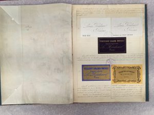[ŒNOLOGIE] Champagne ROEDERER, Certificat de dépôt de marque et album d’étiquettes anciennes et modernes.{CR}On joint :{CR}Le Champagne MUMM.{CR}Plaquette publicitaire éditée par Draeger, 1959, illustrée par FOUJITA et UTRILLO.