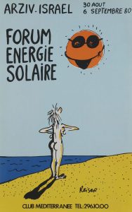 [ÉNERGIE] REISER. Forum Énergie solaire, Arziv-Israël, Club méditerranée, 30 août-6 septembre 1980.{CR}Affiche sérigraphiée entoilée.{CR}Bon état.{CR}57 x 35,5 cm