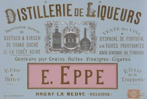 [IMPRIMERIE] 2 cartons publicitaires :{CR}- Distillerie de liqueur, E. EPPE{CR}30 x 44,5 cm{CR}- Sirop Famel{CR}31,5 x 47 cm