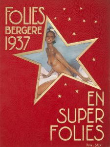 [THÉÂTRE] En super folie, Folies Bergères, 1937.{CR}Programme in-4 broché et découpé, de l’année 1937, revue menée par Joséphine Baker. Richement illustré. Couverture de Jean Gabriel DOMERGUE.{CR}Quelques déchirures sur la couverture.