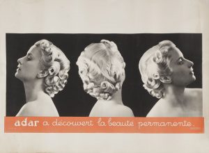 STUDIO PAUL VITEZ.{CR}Adar a découvert la beauté permanente, 1936{CR}Création publimp Nadal.{CR}57 x 75 cm{CR}3 exemplaires.