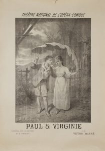 Edward ANCOURT (1841-?){CR}Paul et Virginie de Victor Massé{CR}90 x 65 cm{CR}Non entoilée, bon état.{CR}On joint : {CR}E. MAUROU{CR}Fortunio de De Flers et Caillavet, musique d’André Messager.{CR}Non entoilée, état moyen (déchirures et plis...