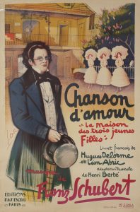 Georges DOLA (1872-1950){CR}Chanson d’amour, la maison des trois jeunes filles, musique de Franz Schubert{CR}Non entoilée, bon état.{CR}120 x 80 cm{CR}On joint :{CR}G. DOLA.{CR}Frasquita. Musique de Franz Lehar.{CR}Signée en milieu vers la...