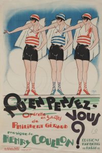 [DOLA]{CR}Signée J Mille et GD{CR}Qu’en pensez-vous ? de Philibert Géraud, musique de Henri Coullau.{CR}Non entoilée, bon état.{CR}119 x 80 cm