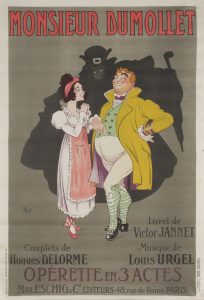 Jean-Marie Michel Liebeaux dit MICH (1881-1923){CR}Monsieur Dumollet de Victor Jeannette. Musique de Louis Urgel{CR}Edition Wall Paris.{CR}Signée en bas à gauche.{CR}Non entoilée, bon état.{CR}79 x 80 cm