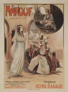 Henri RUDAUX{CR}Marouf{CR}Lucien Nepoty, musique de Henri Rabaud.{CR}Non entoilée, bon état.{CR}82 x 60 cm{CR}On joint : ANONYME{CR}La Flamenca, de Henri Cain, EG. et ED Adonis, Musique de Lucien Lambert.{CR}Imprimerie Chaix.{CR}Non entoilée. Bon...