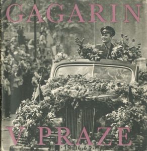 anglais, français, espagnol, allemand). Couverture souple illustrée (usures). Hajek, Karel (1900-1978) Gagarin v Praze. Orbis, Praha, 1961. In-8 (16,5 x 16 cm). Édition originale, brochée. Photographies reproduites en héliogravure. Couverture souple à décors de fleurs, sous jaquette illustrée.