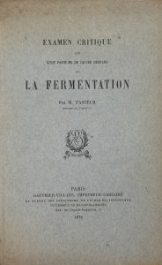 PASTEUR (L.). Examen critique d'un écrit posthume de Claude Bernard sur la fermentation. Paris, Gauthier-Villars, 1879. In-8 broché de XXIV pp., 156 pp. - 2 planches hors-texte gravées sur cuivre (petite mouillure en marge d'une planche. les...