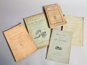 [Traitement de la vigne] [Phylloxera]. ENSEMBLE DE 7 OUVRAGES. - CHEVRIER. La transfusion, guérison des vignes phylloxérées et suppression de la Taille des arbres fruitiers sur la vigne. Système J. Desbois. Lyon, Vitte et Perrussel, 1886. Grand...