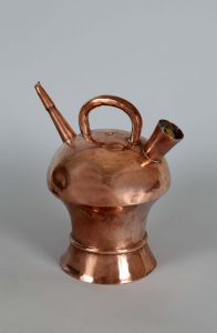 GARGOULETTE. Récipient en cuivre à panse globulaire rétreinte à la base sur pied jupe. Goulot et bec verseur tronconiques. Époque XIXe siècle. H. : 27 cm.