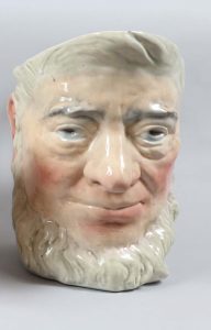 PICHET " TÊTE DE PAUL KRUGER ". Faïence polychrome de Sarreguemines. Marqué. H. : 21 cm.