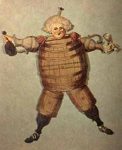 Nous retrouvons de nombreuses gravures le représentant habillé de tonneaux et tenant un verre à la main.