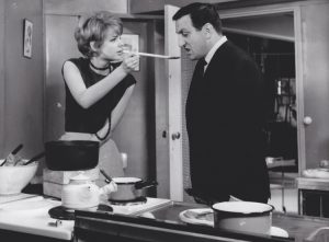 LES TONTONS FLINGUEURS Sabine Sinjen et Lino Ventura dans le film de Georges Lautner (1963). Épreuve argentique d'époque (17×23 cm) attribuée à Jean-Louis CASTELLI. Tampon de la production au dos.