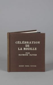 ** OLIVER (Raymond). Célébration de la nouille. Robert Morel, Le Jas du Revest-Saint-Martin, 1965. In-12 carré, toile éditeur. Parfait état. Envoi de l'auteur à sa future seconde épouse et photo d'identité de Raymond Oliver collé. De la...