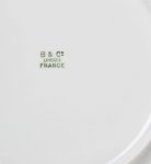 ** OLIVER (Raymond). ASSIETTE RONDE " LE CANARD A L'ORANGE ". Dessin humoristique de Raymond Oliver d'un canard à l'orange. Porcelaine blanche B & Co, Limoges France, marquée au dos. Signée et titrée. D. : 24,3 cm. Dans sa boîte. Provenance :...