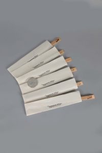 ** 6 PAIRES DE BAGUETTES (COUVERTS ASIATIQUES), circa 1980. En bambou aux initiales de Raymond Oliver marquées au feu. Dans leur étui papier de soie portant la signature imprimée du chef. Provenance : Collection Raymond Oliver, Restaurateur du...