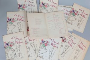 ** [Grand Véfour]. ENSEMBLE DE 14 MENUS DU GRAND VÉFOUR. Des années 1948 à 1963. Quelques menus sont des épreuves de Raymond Oliver lui permettant de corriger avant impression le menu sélectionné. La couverture de 12 des menus a été...