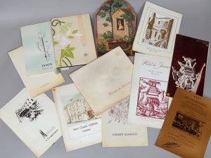 ENSEMBLE DE 14 MENUS. Meneau à l'Espérance - Édouard Carlier à l'enseigne de A. Beauvilliers (2 ex.) - Gérard Pangaud, Alain-Rieser-Rogues à l'Hôtel de France, Évreux - Olivier et Jane Roellinger à la Maison de Bricourt, Cancale - Gérard...