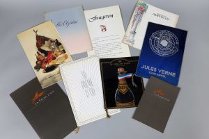 ENSEMBLE DE 11 MENUS. Christian Willer à La Palme d'Or de l'Hôtel Martinez à Cannes (2 ex.) - Christian Willer et Christian Sinicropi à La Palme d'Or (3 ex.) - Jean-Paul Bonin au Crillon à Paris, exemplaire n° 368 - Roger Vergé à Le Moulin de...