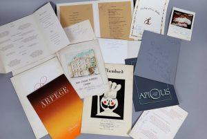 ENSEMBLE DE 13 MENUS. Restaurant Jacques Maximin pour un déjeuner d'automne provençal - Bernard Loiseau à La Côte d'Or à Saulieu - Restaurant Jean-Pierre Billoux - Alain Passard à l'Arpège (3 ex. différents) - Gérard Ferri à la Couletta -...