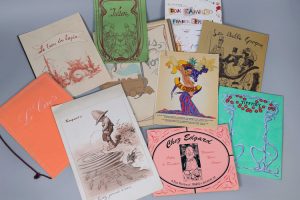 anniversaire 1901-1981 - Chartier - Patrick Durant à Le Ciro's - Terminus Nord - Thierry Guinit au Lodge Park à Megève - Carte du petit-déjeuner de l'Hôtel Mont-Blanc à Megève - Jean-Paul Lacombe au Léon de Lyon (2 ex. : carte des mets ou carte de gastronomie allégée) - Le Privé, Casino de Monte-Carlo - Laux… à la bouche - Mercure Galant (2 ex.) - Didier Oudill au Pain Adour et Fantaisie - La Flotille - Le Grand Cercle - Jarrasse - Le Béarn à Genève - La Dolce Vita au Casino de Deauville - Pierre Vedel - Les Trois Forts à Marseille.