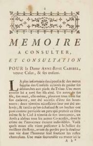 Toulouse - Affaire Calas - Voltaire, Mémoire à consulter et consultation pour Dame Anne-Rose Cabibel, veuve Calas, & pour ses enfans. Signé Elie de Beaumont (et quinze autres avocats). Paris, Le Breton, 1762, 70