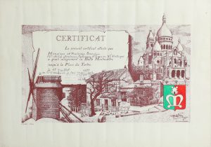 du Tertre le 1er juillet 1985. Signé Anatole, garde-champêtre de la Commune libre du vieux Montmartre.