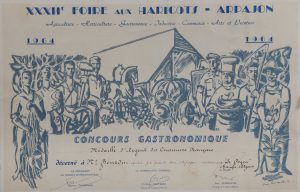 °° [Concours Gastronomique de la XXXIIe Foire aux Haricots - Arpajon, 1964]. Concours gastronomique Médaille d'argent (950 millèmes) des Cuisiniers Français décernée à Monsieur Bourdin pour le restaurant le Doyen aux Champs Élysées. Joli...