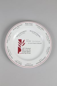 - [10ème Festival Musical du Grand-Hôtel du Cap-Ferrat. 6 et 7 avril 2001] 30 ans de gastronomie de Jean-Claude Guillon. Porcelaine blanche à décor rouge et gris.