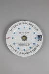 - [Le Grand Cordon d'Or de la Cuisine Française, 40ème anniversaire, Monaco, le 6 juillet 2009]. Porcelaine blanche de Pillivuyt à liserés dorés et décor polychrome d'une toque de chef.